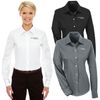 This button down is constructed of a 53% cotton/43% polyester/4% lycra blend. It features true Non-iron performance straight from the dryer and a stain release finish. Features also include an active fit, patented pucker-free taped seams, fused collar, cuffs, and placket, split back seam with bias cut back yoke, straight collar, pearlized buttons, front and back princess seams for a flattering feminine fit, and bust darts for a flattering feminine fit.